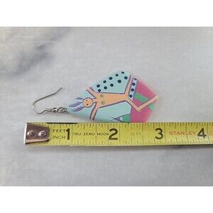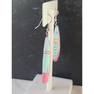 Bohemian Wooden Handpainted Dangling Earrings Vintage Costume Jewelry NOS