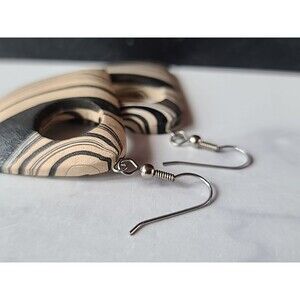 Bohemian Wooden Triangular Shaped Dangling Earrings Vintage NOS