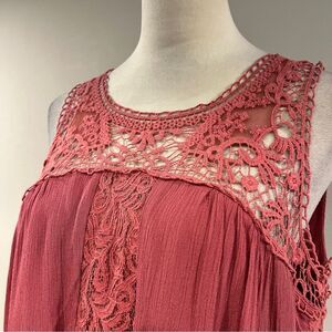 Bohemian a-line Sleeveless scoop neck mini dress with lace details