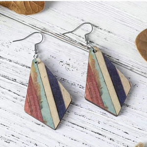 Bohemian diamond shape wood dangle earrings multicolor stripe