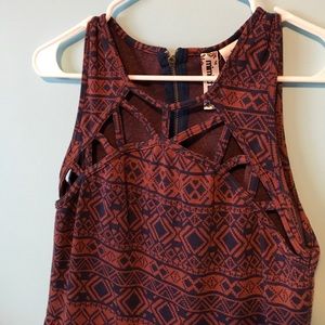 brown & navy printed bohemian dress