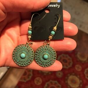 Bohemian mandala bronze patina dangle wire earring. Bronze tones. Beaded vintage vibe. Costume