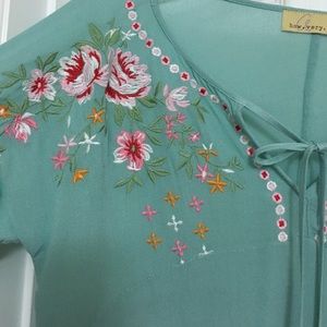 Pretty sheer so you would probably want to wear a slip under it but it is super soft and comfortable. I'm selling it because I bought it a while ago and just haven't worn it because the sleeves are too long for my little arms.