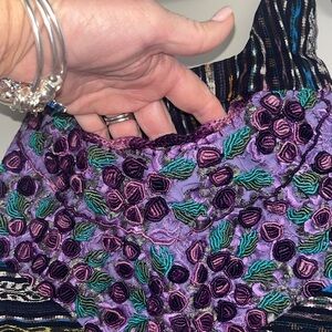 Bohemian tapestry like crossbody / shoulder bag with lavender embroidery OS