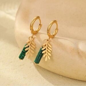 Bohemian natural stone wheat earrings in stainless steel 18k gold plated hardware