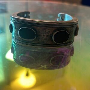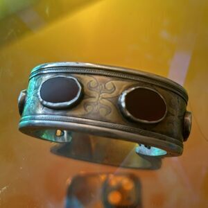 Beautiful antique silver and carnelian Turkemann style cuff bracelet.