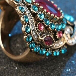 🌺 Bohemian Unique Crystal Ruby Cocktail Ring With embellished stunning Gemstones multicolored Lady's Ring. Very unique with a vintage flair 🌺
