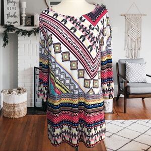 Bohemian Multi-Color Rainbow Aztec Pattern Oversized Tunic Size Small NWT!