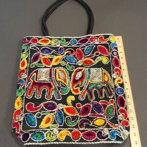 Bohemian Style Black Purse with Elephant Decor NWOT