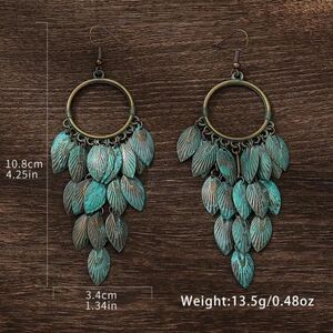 ✨ 🆕 ✨ Bohemian Turquoise & Bronze Leaf Dangle Earrings Antique Finish✨