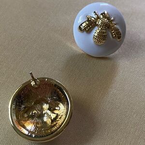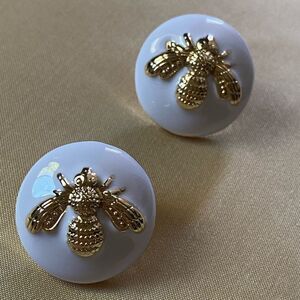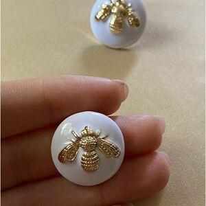 Bohemian white round bee detail stud earrings in gold hardware detail