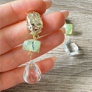 Bohemian green and clean detail drop earrings in gold hardware