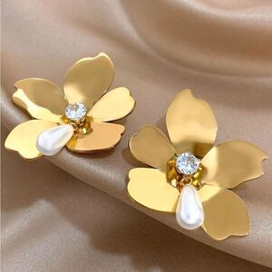 Bohemian flower with pearl detail earrings in 18k gold plated hardware