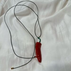 Boho red pepper black band wrap necklace