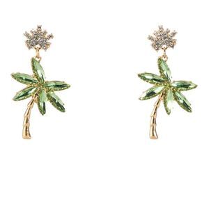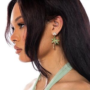 Bohemian green palm earrings in gold hardware