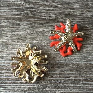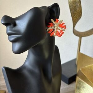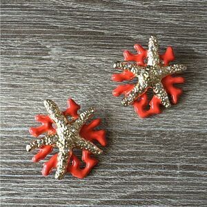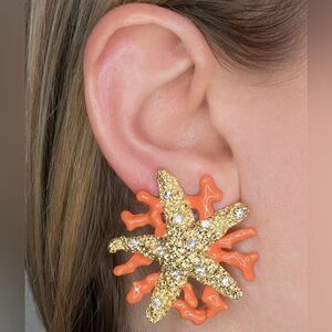 Bohemian starfish with orange detail stud earrings in 18k gold plated hardware