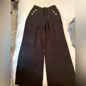 Chic wide leg pants. Features button details. Perfect for any occasion.