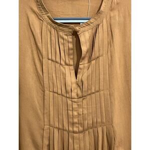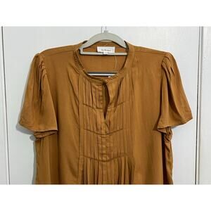 Bohme Blouse Large Mustard Yellow Pleated Flowy Preppy Summer NWT
