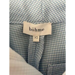 Bohme blue gingham slack pants in size XS. Features a classic slim-fit design with a stylish gingham pattern. Perfect for work, casual outings, or dressing up with a blouse or blazer. Excellent condition.