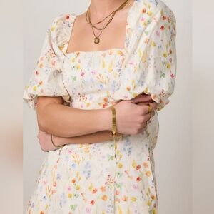 Embrace elegance with this floral puff sleeve maxi dress. Perfect for any occasion, this dress features a beautiful cream base adorned with colorful floral patterns. The puff sleeves add a touch of sophistication, making it a must-have in your wardrobe.