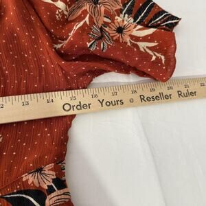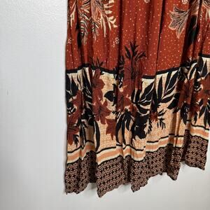 Bohme Dress Womens Small Rust Orange Floral Midi Short Sleeve Boho 100% Rayon