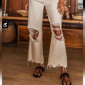 Bohme High Waisted Wide Leg Distressed Cream Khaki Jeans, 28