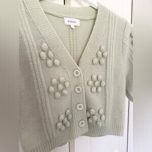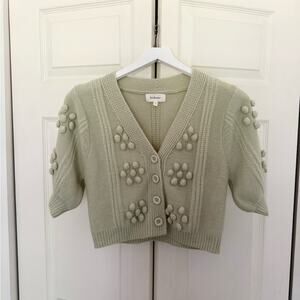 Bohme Light Green Pale Green Pom Pom Crop Cardigan Sweater Size Small