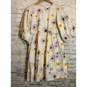 Bohme Prairie Dress Womens Medium Ivory Floral Puff Sleeve Boho Peasant Cottage