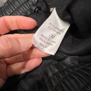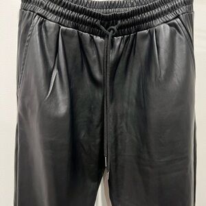 Bohme Stylish and comfortable vegan faux leather black jogger pants perfect for casual or dressy wear. Features an elastic waistband for an adjustable fit. Excellent condition, size medium.