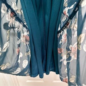 Bohme Teal Floral Sheer Overlay Midi Dress Size S