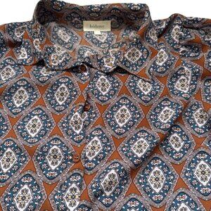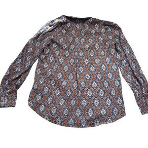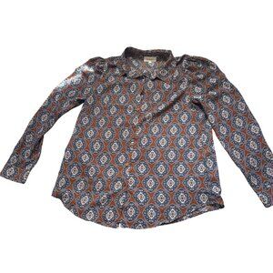 Bohme Womens Size S Long Sleeve Button-Down Shirt Geometric Print Blue & Rust