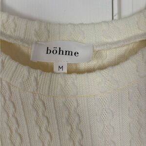 This elegant butte yellow blouse from Bohme features a ribbed texture and short puffed sleeves, offering a stylish and feminine touch. The soft fabric and simple crew neckline make it a versatile piece for any occasion.