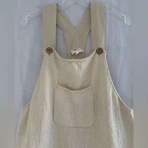 Stylish cream overalls featuring a front pocket and adjustable straps. Knit and super comfortable