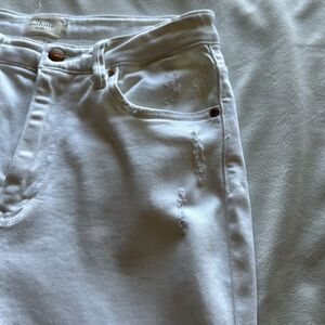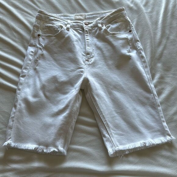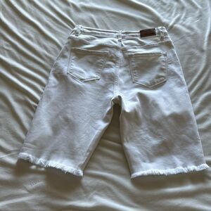Used but good condition One stain on back pocket see pic. (May come out with stain remover??) Bermuda shorts length Denim with spandex