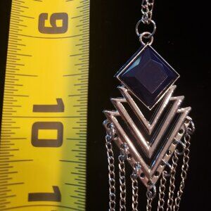 Boho 1980's 18" Silver Tone & Dark Purple Pendant w/ 7 tassels Necklace