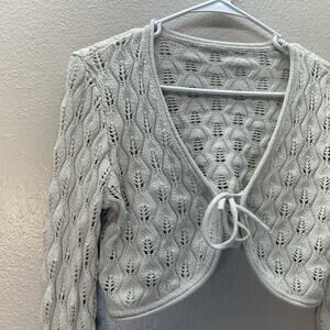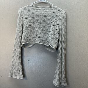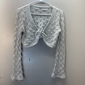 Boho 70s Style Cropped Tan Crochet CARDIGAN SWEATER SZ M Urban Outfitters Fairy Fairycore coquette festival indie bell sleeves