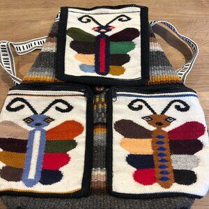 Boho ARTESANIAS Multi-Color Fully Lined Handwoven Wool Backpack Ecuador