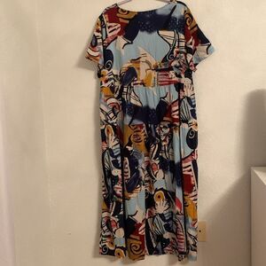 Boho Abstract Print Cotton Short Sleeve Women's Maxi Dress Size XL