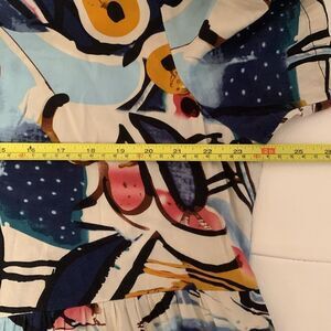 This stylish dress features a vibrant abstract print, perfect for any occasion. The mix of colors adds a unique touch to your wardrobe