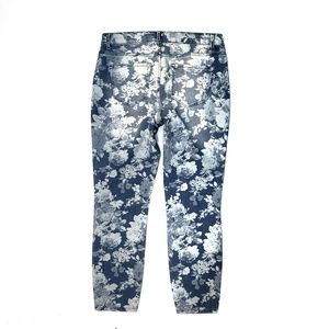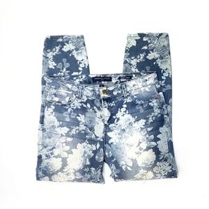Skinny Ankle Cropped Floral Flower Print Denim Blue Jeans