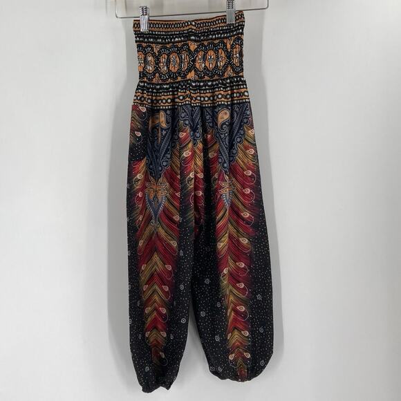 Boho Aladdin Boho Smocked Waist Paisley Print Festival Pants Blue Red Youth Lg