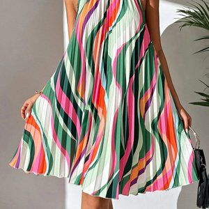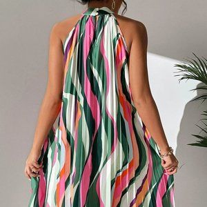 Boho Allover Print Pleated Halter Mini Dress multicolor