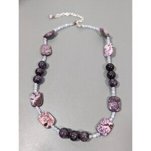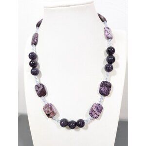 Boho Amethyst Purple Stone Necklace Chunky Beads Artisan Gemstone Statement 23"