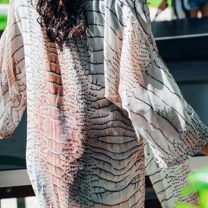 Simplicity of design and flow make this Kimono a true find. Whether you wear it over your favorite black dress, or strolling on the beach in your favorite bathing suit, it's definitely a head-tuner. The perfect addition to your closet and one of our favorites.