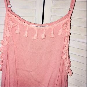 Boho Anthropologie Pastel Pink Tank Top Tassels Size M EUC Barbie Bohemian