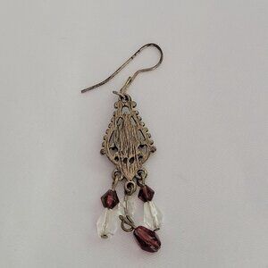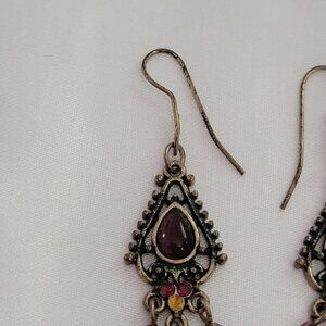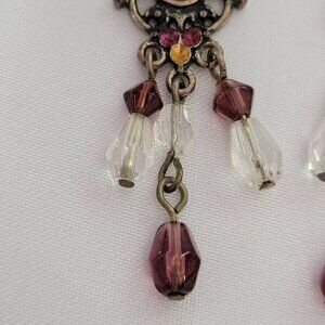 Boho Antique Gold Dangling Earrings With Purple & Clear Beads Teardrop Design Ho