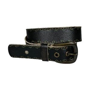 Boho Artisan Black Distressed Painted Floral Belt OS Cottage Western Casual