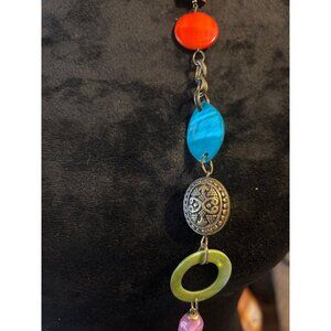 Boho Artisian Statement Necklace Mixed Beads, Metal Accents Handcrafted Unique