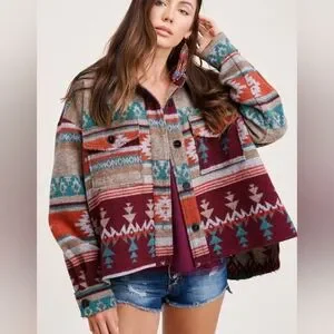 brand new aztec print jacket. very versatile, can be worn western, rancher, punchy, cowgirl, boho. Great weight. not too light or heavy.