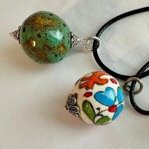 Set ~ Set of 3 Ceramic bead boho pendant chocker necklaces.